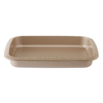 Chocolate brownies, hearty gingerbread or a classic carrot cake, your tray bakes are sure to triumph when you bake them in this Leo Balance rectangular cake pan 13.25"! Thanks to the carbon steel material and the diamond-textured surface, those delicious treats are baked nice and evenly while the high-quality FernoGreen, PFAS-Free, PTFE-Free, non-stick coating ensures an exemplary food release and durability. Want to make sure everyone gets an equally large piece? Just use the convenient grid lines on the side to make even portions! Wide and ergonomic handles for a safe grip, even when you are wearing oven mitts or using potholders. The Leo carbon steel nonstick bakeware is built to endure high oven temperatures, reaching up to 450°F.