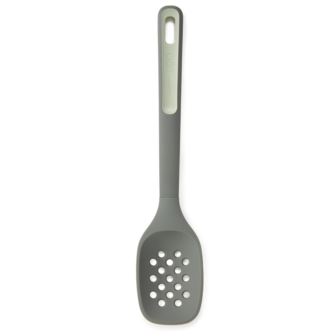 Need to skim floating fat from your homemade stock or want to remove hot foods from boiling water? This Leo Balance skimmer 12.75" is heat-resistant, lightweight recycled nylon with silicone won't scratch your delicate cookware. The soft-touch rubber handle ensures a comfortable grip when you're scooping up your ingredients. Its long handle ensures your hand stays well clear of the heat source while the perforation pattern in the skimmer provides effortless skimming or draining. Don't have a lot of drawer space in your kitchen? Just use the hole in the handle for convenient hanging storage.