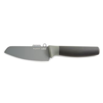A veggie snack, a hearty soup, or a summer salad, with the Leo Balance nonstick vegetable knife 4.5" you chop, slice, and dice the ingredients in no time. This lightweight knife is crafted from high-quality stainless steel with recycled soft-touch handle is a pleasure to use and makes the thinnest slices for a clean-cut result. The non-stick stainless steel blade glides through vegetables like butter, making light work of your food prep, while the soft-touch handle helps you to get a comfortable grip. The non-stick coating also ensures ingredients won't adhere to the blade during use. An added bonus is the integrated zester which allows you to brighten up your dishes with an acidic touch. It comes with a protective sleeve, ensuring safe storage in your drawer while safeguarding the sharp blade. Additionally, the handle, crafted from recycled PP, reflects our commitment to environmental sustainability. Adds a soft pop of color to any kitchen.
