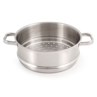 BergHOFF's Belly Shape Steamer insert is a high-quality insert, crafted from durable 18/10 stainless steel, it features a sleek mirror finish that adds elegance to your kitchen. Designed with wide, ergonomic comfort-grip handles, it offers easy handling and stability. The ample space accommodates a variety of foods, from vegetables to seafood, while ensuring even heat distribution for perfectly steamed results. Compatible with any cooktop including induction, electric, gas, halogen, and vitro-ceramic cooktops, this insert enhances your culinary experience with its practical and stylish design. Steam fish, veggies, or chicken for the perfect healthy addition to any dish. Pair this steamer with BergHOFF's Belly Shape 9.5" Stockpot for versatile cooking. Dishwasher safe.