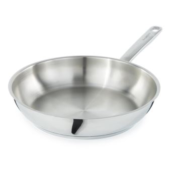 DiNA Helix 11" 18/10 stainless steel frying pan offers the perfect balance of sustainability, durability, and performance. Crafted from premium 18/10 stainless steel made from recycled materials, this frying pan delivers exceptional strength and resistance to corrosion, ensuring it stands the test of time in your kitchen. Ideal for searing, sautéing, and frying a variety of ingredients, this fry pan is compatible with various of cooktops such as Induction, Electric, Gas, Halogen, Glass Top, and Vitro-ceramic. Oven safe up to 480°F. Each pan is engineered with a capsuled base, promoting even and fast heat distribution for consistent cooking results. With its eco-friendly composition and long-lasting design, this pan is a smart choice for those who want to cook with care for both their meals and the planet.