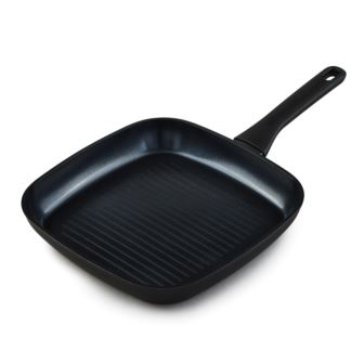 DiNA Helix 10.25" Grill Pan excels in perfectly searing steaks, fish filets, or grilling a variety of vegetables. It's made from high-quality recycled aluminum with a CeraGreen non-stick, nontoxic PFAS-free and PTFE-free ceramic coating for an easy food release and hassle-free cleanup. The grill pan's handle ensures a comfortable and safe grip while the raised grill lines leave those typical grill marks and allow any fat and moisture to escape easily so you get that extra crispy result. Whether you're searing a steak or grilling vegetables, this grill pan delivers exceptional results every time. This grill pan is compatible with a wide range of cooktops such as Induction, Electric, Gas, Halogen, Glass Top, and Vitro-ceramic. Upgrade your cooking experience with this durable and efficient grill pan.
