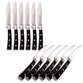 Classico 12pc Steak Knife Set are designed to make slicing through your favorite cuts of meat a breeze. Durable high-quality stainless steel is absolutely indestructible and corrosion resistant. The highly polished surface is hard wearing, thick, easy to clean and hygienic. Advanced manufacturing methods plus traditional craftsmanship guarantee flawless product quality. Classic steak knife design makes this set of 12 knives the perfect complement to any flatware collection. Triple riveted handle lends strength and stability to every cut, giving you long lasting performance from these knives. Stainless steel blades are highly polished and honed to a fine edge, ready to cut through any meat with ease. Ergonomic handle design offers perfect grip and prevents sliding during cutting, for safe, precise cuts. Package includes: 12x Steak Knives 5"