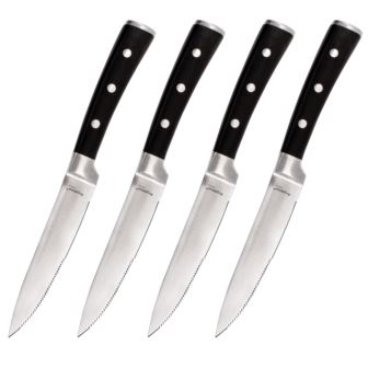 Everyone needs a great knife set! Durable high-quality stainless steel is absolutely indestructible and corrosion resistant. The highly polished surface is hard wearing, thick, easy to clean and hygienic. Advanced manufacturing methods plus traditional craftsmanship guarantee flawless product quality. Made of stainless steel blades and ABS handles. Set includes: 4x Steak Knives 5"