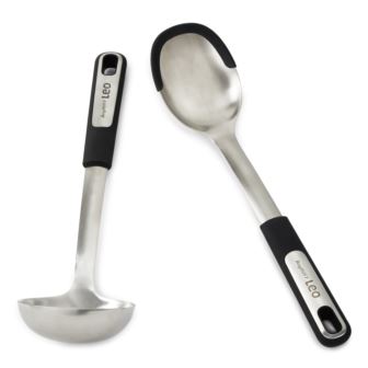 Elevate your dining experience with this Graphite 2pc Soup Ladle and Serving Spoon Set. This set features a durable stainless steel soup ladle with a recycled PP handle for a comfortable grip, and a serving spoon with a stainless steel head and silicone cover for gentle handling and a recycled PP handle. The soup ladle is perfect for serving soups, stews, and other hearty dishes, while the serving spoon is ideal for salads, desserts, and more. The sleek and modern design complements any table setting, making this set both practical and stylish. Package includes: 13" Soup Ladle, 13.5" Serving Spoon