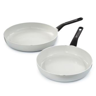 Leo Glints 2pc fry pan set is tailor-made to assist in the preparation of either your breakfast in the morning or your evening meal at night. The recycled aluminum body for heat distribution and the playful colors to brighten up your kitchen are the perfect combination to start cooking your daily meals. Thanks to the high-quality CeraGreen, PTFE-Free, PFAS-free, non-toxic, non-stick coating, you need little to no oil for healthier cooking and makes the pan easy to clean. The glossy stay-cool handle ensures you to safely take the pan from the stove to the dinner table. On top of that, the frying pan can be used on any kind of stovetops, including induction, electric, gas, halogen, downdraft, and vitro-ceramic cooktops. Cleaning is hassle-free, built to withstand heavy and frequent use. Package includes: 11" Frying Pan, 12.5" Frying Pan