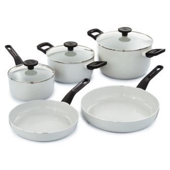 Leo Glints 8pc cookware set provides you with a variety of cookware options for all your culinary needs. Made of durable, recycled aluminum, this cookware set is coated with BergHOFF's CeraGreen nonstick ceramic coating and equipped with stay-cool handles. Additionally, CeraGreen is nontoxic and PFAS-free and PTFE-free, ensuring easy food release while promoting safe and healthy cooking. The saucepan is perfect for simmering sauces and soups, while the stockpots are ideal for boiling pasta or making large batches of stews. The fry pans are great for sautéing vegetables or frying up breakfast favorites like eggs and bacon. The included lids feature an integrated venting hole for easy, energy-efficient cooking. Ensures even, fast heat distribution and is suitable with any cooktop such as induction, electric, gas, halogen, downdraft, and vitro-ceramic. Package includes: 7" Saucepan 2qt., 8" Stockpot 3qt., 9.5" Stockpot 5.9qt., 9.5" Fry Pan, 11" Fry Pan, 3x Lids