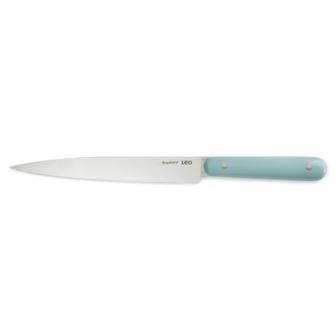 Looking for a knife that will cut your Sunday roast with silky-smooth precision? Then Leo Slate carving knife 8" is just the thing for you! This knife is made from high-quality stainless steel with stunning glossy double rivets handle not only looks fierce in every kitchen but also offers a safe and secure grip. Its combination with the glossy finish handles not only enhances the knife's utility but also adds a touch of elegance to your table setting. This carving knife is a specialized tool with a long, thin blade, ideal for precisely slicing and serving meats, making it a perfect choice for family gatherings and special occasions. It also has an edge that will retain its razor sharpness and glides right through cooked meat and poultry. On top of that, you've got the glossy handle that will certainly brighten up your kitchen during your cooking adventures. Choose between two matching colors and brighten up your kitchen with these glossy finishing knives.