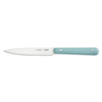 Between a paring knife and a chef's knife, this Leo Slate utility knife 5" is a true jack of all trades. From peeling mid-sized fruits and vegetables to cutting citrus fruits and slicing sandwiches, the sharp stainless steel blade does it all in a moment. This knife is made from high-quality stainless steel with stunning glossy double rivets handle not only looks fierce in every kitchen but also offers a safe and secure grip. Its combination with the glossy finish handles enhances the knife's utility and adds a touch of elegance to your table setting. On top of that, the handle offers a very comfortable and secure grip so you can safely cut, slice, or dice a wide variety of ingredients. Choose between two matching colors and brighten up your kitchen with these glossy finishing knives.