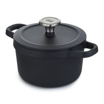 Leo Graphite enameled cast iron stockpot is designed to meet all your cooking needs with style and functionality. Cook like a true professional with this versatile cast iron casserole. The wide handles on this stockpot make it easy to transport from stovetop to table, while the matching lid helps to lock in moisture and flavor during the cooking process. Whether you're simmering soups, boiling pasta, or braising meats, this stockpot is versatile enough to handle it all. The durable construction means that this stockpot will last for years to come, making it a valuable addition to any kitchen. Perfect for your slow cooking recipes, this casserole goes from the cooktop to the oven to the table with ease and style. Braise your meat for a tasty stew or a spicy curry, and keep it nice and juicy thanks to the basting bumps on the inside of the lid. Ensuring fast and even heat distribution and retention, this stockpot is compatible with many cooktops like induction, electric, gas, halogen, and vitro-ceramic. Oven safe up to 535°F. Available in two sizes: 8"/3.2qt. and 10.25"/6qt.