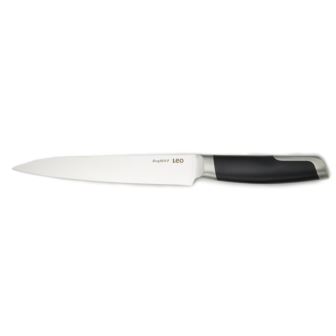 Looking for a knife that will cut your roast with silky-smooth precision? Then this Leo Graphite stainless steel carving knife 8" is just the thing for you! This knife is crafted from high-quality X50CrMov15 stainless steel with soft touch ABS handle. Its stainless-steel blade has an edge that will retain its razor sharpness and glides right through cooked meat and poultry. A well-balanced knife is a pleasure to use and makes the thinnest slices for a clean-cut result. On top of that, you've got the soft touch handle fits your hand like a glove for extra comfort and safety. This carving knife is a specialized tool with a long, thin blade, ideal for precisely slicing and serving meats, making it a perfect choice for family gatherings and special occasions.