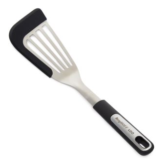 The BergHOFF Leo Graphite stainless steel slotted fish turner is a sleek and functional kitchen tool designed to make flipping delicate foods effortless. With a flexible silicone head and slotted design, it easily slides under fish, fillets, or pancakes without breaking them apart. The 14.5-inch length offers excellent reach and control, while the stainless steel body provides strength and durability. Featuring a comfortable handle made from recycled polypropylene, this turner is not only efficient but also eco-conscious. Heat-resistant and easy to clean, it's a reliable addition to any kitchen and perfect for home cooks and professionals alike.