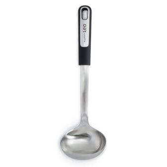 Serve up soups, stews, sauces, and more with ease and elegance using the Leo Graphite 13" soup ladle. Designed for everyday functionality and built with high-quality stainless steel and a recycled PP handle, this ladle is as durable as it is stylish. Its deep, generously sized bowl makes it perfect for scooping large portions of liquids, while the long handle gives you the reach needed to serve from deep pots without spills or splashes. The ergonomic handle ensures comfort and control, while the built-in hanging loop offers convenient storage. Whether you're ladling hearty chili or a delicate broth, this kitchen essential delivers precision and ease, every time.