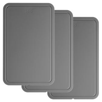 This Legacy 3pc cutting board 12.5" set is designed for a perfect fit in the Leo Legacy knife block. Each board is designed to serve a specific cutting purpose while ensuring the separation of vegetables and raw meat. Crafted from 100% BPA-free material, these versatile boards are not only environmentally friendly but also reusable and low-maintenance. Their innovative design prevents any liquids from escaping, keeping your kitchen countertop clean with grooved features for efficient drainage. The rounded edges offer a secure grip during handling, and these boards can also double as serving trays. After meal preparation, they can be conveniently placed in the dishwasher for easy cleaning, allowing you to savor your dinner without hassle. This set includes 3x grey cutting boards (12.5" x 7.75").