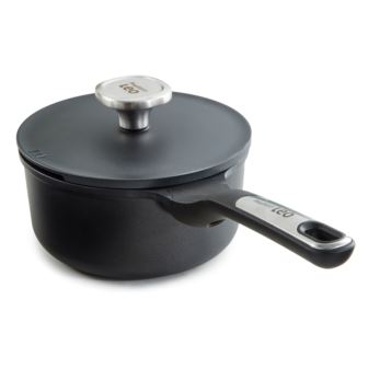 Leo Phantom 7" saucepan 2.1qt. is your go-to for versatile cooking, offering a wide, even surface that excels at quickly browning, searing, and simmering a variety of dishes with ease. The lightweight, recycled cast aluminum body is easy to handle while its cooking surface provides easy food release thanks to its CeraGreen nonstick, nontoxic, PFAS-free and PTFE-free ceramic coating. Boosted with a full disk bottom, this saucepan is designed for energy efficient cooking and suitable for any stovetop such as induction, electric, gas, glass top, and vitro-ceramic. Oven safe Long and stay-cool handle not only prevents you from burning while cooking but also provides a safe and comfortable grip. Matching cover for energy-efficient cooking with condensation bumps on the lid's interior for self-basting. Ideal for melting butter, making sauces, reheating leftovers, cooking grains, and more. The draining holes on the lid make straining easier. Explore our Leo collection for an extensive array of pots and pans, available in various materials and sizes.