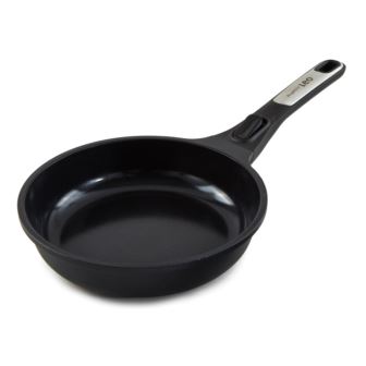 Leo Phantom fry pan combines sustainable design with high performance, featuring a non-toxic, PTFE-free, and PFAS-free CeraGreen ceramic coating on recycled cast aluminum. Its stay-cool handle ensures safety and comfort, while the lightweight body and non-stick surface allow for cooking with minimal oil and effortless cleanup. The pan's full disk bottom provides even heat distribution for energy-efficient cooking, suitable for any cooktop such as induction, electric, gas, glass top, and vitro-ceramic. The detachable handle offers convenience for oven use up to 400°F without handle and easy storage. Perfect for frying, searing, and browning, this pan is a versatile addition to any kitchen. Explore the Leo collection for more high-quality cookware options in various materials and sizes. Available in 4 sizes: 8", 9.5", 11", 12.75"