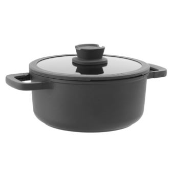 Leo Stone+ stockpot is a combination of durability and eco-friendliness with its cast aluminum construction and non-stick CeraGreen ceramic coating, crafted from 100% natural-based ingredients. Free from PFAS and PTFE, this pot ensures healthier cooking and easy cleaning. It features a stay-cool handle for safe handling and a lid with a built-in spoon rest knob for added convenience. The integrated draining hole and steam vent offer versatile cooking options, while the durable cast aluminum body guarantees fast, even heat distribution for energy-efficient performance. Suitable for all cooktops, including induction, gas, electric, vitroceramic, halogen, and downdraft, and oven safe up to 440°F without the lid, this stockpot is a practical and sustainable addition to any kitchen. hand wash only for optimal care. Available in 3 sizes: 3qt., 4.6qt., 5.9qt.