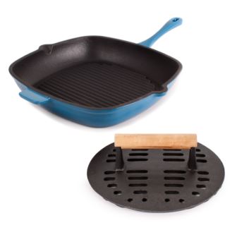BergHOFF - Neo 2pc Cast Iron 11" Grill Pan with Slotted Steak Press, Blue