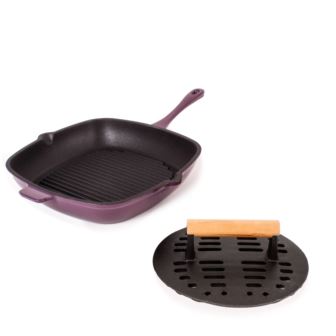 BergHOFF - Neo 2pc Cast Iron 11" Grill Pan with Slotted Steak Press, Purple