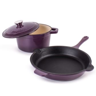 BergHOFF - Neo 3pc Cast Iron Cookware Set, Fry Pan & Round Dutch Oven, Purple