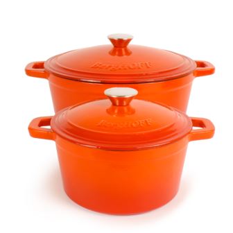 Neo Dutch Oven Set 3qt. and 7qt.is built to last for years to come. Crafted from durable cast iron with an enameled body this cookware heats up evenly and stays hot longer. The ergonomic handles provide a secure grip. The included vapor seal lids are designed without a vent to maintain the retention of nutrients, vitamins, moisture, and taste in your dishes. Use the stockpot to braise short ribs, make hearty stew, three bean chili, curry chicken, and so much more. Our Neo cast iron cookware is suitable for all cooktops including gas, electric, ceramic, glass, and induction. You can sear your food on the stovetop, and finish in the oven. Oven safe up to 535°F. Set includes: 11" Round Dutch Oven 7qt, 8" Round Dutch Oven 3qt, 2x Lids. Available in 9 colors: Blue, Green, Meringue, Orange, Oyster, Pink, Purple, Red, White
