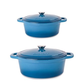 Neo 4pc enameled cast iron Dutch oven set is built to last for years to come. Crafted from durable cast iron with an enameled body this cookware heats up evenly and stays hot longer. The ergonomic handles provide a secure grip. Cook like a pro with the versatile dutch oven that can go effortlessly from browning on the stove top to roasting in the oven. Braise short ribs, make hearty stew, three bean chili, curry chicken, and so much more. Our cast iron cookware set is suitable for all cooktops including gas, electric, ceramic, glass, and induction. Oven safe up to 535°F. You can sear your food on the stovetop, and finish in the oven. Set includes: 13" Oval Dutch Oven 8qt, 11.5" Oval Dutch Oven 5qt, 2x Lids. Available in 9 colors: Blue, Green, Meringue, Orange, Oyster, Pink, Purple, Red, White