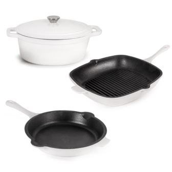 BergHOFF - Neo 4pc Cast Iron Cookware Set, Grill Pan, Fry Pan & Oval Dutch Oven, White