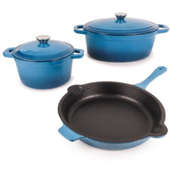BergHOFF - Neo 5pc Cast Iron Dutch Oven Set with 10" Fry Pan, 3qt. & 5qt., Blue