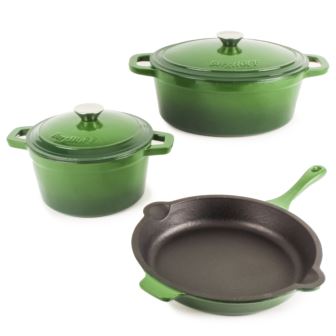 BergHOFF - Neo 5pc Cast Iron Dutch Oven Set with 10" Fry Pan, 3qt. & 5qt., Green