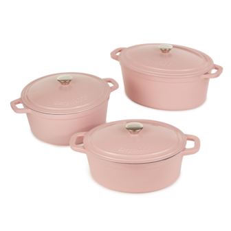 Neo 6pc Cast Iron Dutch oven set is layered with an enamel coating on the inside and outside, no need for preseasoning. The dutch ovens are ideal for slow cooking stews, braising, baking and so much more. Cook like a pro with the versatile dutch oven that can go effortlessly from browning on the stove top to roasting in the oven. Braise short ribs, make hearty stew, three bean chili, curry chicken, and so much more. Our cast iron cookware set is suitable for all cooktops including gas, electric, ceramic, glass, and induction. Oven safe up to 535°F. You can sear your food on the stovetop, and finish in the oven. After use, it is recommended to allow the cookware to cool before washing, and hand washing is advised to maintain the integrity of the enamel coating. Invest in this cookware set and elevate your cooking game to new heights. Set includes: 5qt Oval Dutch Oven, 7qt Round Dutch Oven, 8qt Oval Dutch Oven, 3x Lids