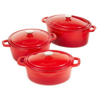 Neo 6pc Cast Iron Dutch oven set is layered with an enamel coating on the inside and outside, no need for preseasoning. The dutch ovens are ideal for slow cooking stews, braising, baking and so much more. Cook like a pro with the versatile dutch oven that can go effortlessly from browning on the stove top to roasting in the oven. Braise short ribs, make hearty stew, three bean chili, curry chicken, and so much more. Our cast iron cookware set is suitable for all cooktops including gas, electric, ceramic, glass, and induction. Oven safe up to 535°F. You can sear your food on the stovetop, and finish in the oven. After use, it is recommended to allow the cookware to cool before washing, and hand washing is advised to maintain the integrity of the enamel coating. Invest in this cookware set and elevate your cooking game to new heights. Set includes: 5qt Oval Dutch Oven, 7qt Round Dutch Oven, 8qt Oval Dutch Oven, 3x Lids