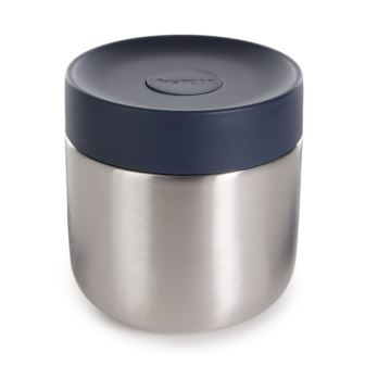 Keep meals fresh, delicious, and ready whenever hunger strikes with the BergHOFF Nommie 12oz food container 4" x 3.75". This compact and durable food jar is built for life on the go. It's perfect for storing everything from warm soups and stews to cool yogurts and fruit. Constructed from high-quality stainless steel and fitted with a BPA-free PP and silicone lid, Nommie is designed to preserve flavor and temperature while being leakproof and easy to carry. The double-walled insulation keeps contents hot or cold for up to 6 hours, so you can enjoy your food just the way you packed it. Nommie's intuitive design features a push-button vacuum release that makes lid removal smooth and effortless, even when the contents are hot. It's compact enough to toss in your bag without worry and dishwasher safe for quick cleanup. Whether you're heading to school, work, the gym, or the park, this reusable food container makes it simple to eat well, waste less, and snack smarter. Available in 6 different colors: Steel, Navy and Steel, Navy, Rose, Sand, Beige