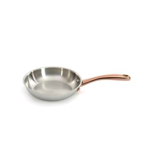Ouro Gold Fry Pan is an essential kitchen tool designed for both style and functionality. Crafted from 18/10 stainless steel, this fry pan features ergonomic rose gold handles that offer a secure, comfortable grip, enhancing safety and control while cooking. Ideal for flipping pancakes or sautéing vegetables, it ensures a smooth and effortless cooking experience. Its multi-layered base ensures even heat distribution so that your food is cooked evenly and thoroughly. Whether you have an Induction, Electric, Gas, Halogen, Glass Top, Vitro-ceramic Stove, this fry pan is the perfect addition to your kitchen. The pan's smooth surface promotes easy food release and simplifies clean-up, eliminating the need for extensive scrubbing. With its sleek, modern design, this fry pan not only performs well but also adds a touch of elegance to your kitchen. Hand wash only. Available in 2 sizes: 8" and 9.5"