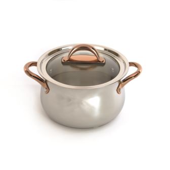 Ouro Gold Stockpot with Glass Lid is a versatile and durable kitchen essential. Constructed from high-quality 18/10 stainless steel, it features stylish rose gold handles that offer a comfortable and secure grip. Perfect for sautéing, braising, and simmering, this stockpot ensures excellent heat distribution for consistent cooking results. The glass lid allows you to monitor your cooking without losing moisture, while the multi-layered base guarantees even heating. Compatible with all cooktops, including Induction, Electric, Gas, Halogen, Glass Top, and Vitro-ceramic, this stockpot combines modern elegance with practical functionality. Its easy-to-clean surface simplifies maintenance, hand wash only. Available in 2 sizes: 8"/4.8qt. and 9.5"/8.1qt.