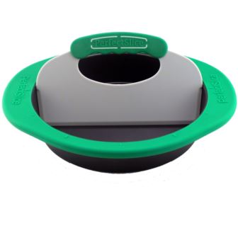 Perfect Slice Round Cake pan set is more than quality baking pans; It's also a convenient cutting system. The unique patented guideline grid around the outer edges of every pan allows you to simply line up an exclusive Perfect Slice cutting tool, and press down to create any portion size desired. Every slice is beautifully uniform. The cutting tool with silicone handle is tough enough to cut the cake yet won't damage your pan. Set includes: 9" Round Cake Pan, Silicone Sleeve and Slicer Tool