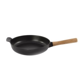 Ron 10.25" Fry pan 2.6qt. is a perfect addition to any kitchen. This high-quality frying pan combines the exceptional heat retention and even cooking of cast iron with a modern, easy-to-clean enameled surface that resists rust and requires no seasoning. The ergonomic, comfort-grip wooden handle ensures a secure and comfortable hold, providing ease of use while adding a touch of classic elegance to your kitchen. Ideal for a wide range of cooking tasks, from searing and sautéing to frying and baking, this versatile pan is oven safe up to 400°F. Suitable for all cook tops, induction, vitroceramic, gas, electric and halogen cook tops. Enjoy the timeless benefits of cast iron with the convenience of a contemporary design, making this frying pan a standout addition to your cookware collection.