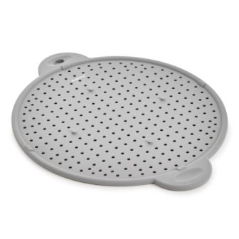When foods and oils get hot, they pop and splatter! That's painful in two ways: First off, IT BURNS! Have you ever felt hot oil splatter on you? Secondly, cleaning kitchen splatters is such a chore! After cooking a nice meal that's the last thing you want to worry about! That's why this BergHOFF silicone splatter screen with its 2-helper handle is a staple for every kitchen. Not only does it allow for steam and air to be released while cooking, but you can also drain, strain, and rinse foods from your pots, bowls, and pans! Stay-cool and ergonomic non-slip grip handle for effortless control. 11" diameter fits most pots and pans. It solves the problem of messy splatter while at the same time avoiding over spill by allowing for steam and air to be released.
