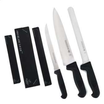 BergHOFF's 3pc stainless steel knife set combines precision and durability. These knives are made of high quality stainless steel with black, PP comfort-grip handles. Its chef's knife is a versatile tool, perfect for chopping, dicing, and slicing a variety of ingredients, offering excellent control and balance. The scalloped utility knife features a serrated edge, ideal for cutting soft foods like fruits, cheeses, and sandwiches without crushing them. Lastly, this serrated utility knife excels at slicing through tough exteriors, such as bread or tomatoes, with ease and precision. Crafted for both performance and style, this set is a must-have for any kitchen. Set includes: 10" Chef's Knife, 6" Scalloped Utility Knife, 8" Serrated Utility Knife