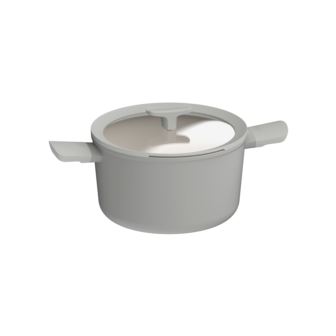 Leo Balance Stockpot 10", 5.8qt. is built with sustainable and healthy non-toxic, PTFE free, PFAS free non-stick CeraGreen ceramic coating, 100% recycled aluminum and stay-cool handle for no oil, no fat cooking, suitable for all types of stoves. If you're rustling up a big batch of homemade soup or a tasty stew in this stockpot, you'll no doubt appreciate the pot's fast, even, and energy efficient heat distribution. Its non-stick coating ensures easy food release, and the soft-touch stay-cool handles are equipped with a comfortable grip. The knob of the glass lid is equipped with a spoon rest function to keep your kitchen clean while cooking. The glass lid that allows you to keep an eye on your food without having to lift the lid and comes with a drain hole so you can easily strain the pot's contents if needed. The matching colors Moonmist and Sage in this Leo collection allow you to combine the different sizes of pots and pans in both colors.
