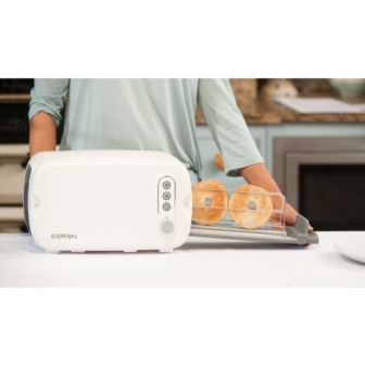 This wide side loading toaster rack allows you to load all types of breads-all shapes or sizes, Baguettes, Cibatta, Paninis to warming croissants and pastries to toasting wholesome sandwiches, savoury pastry snacks and sweek treats too. It has a Defrost and Cook Mode and a Reheat function-perfect for last nights pizza!. Wide loading toaster rack. Multi use toasting. Light intelligent technology. Thermo regulated for even browning. Removeable cover that doubles as a serving tray. 120V-60Hz-850W.