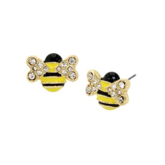 Playful enamel bee stud earrings adorned with delicate stone accents. Earrings have a post back closure.