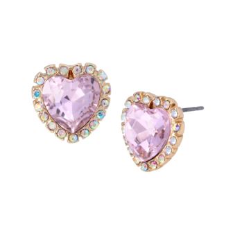 Lovely pink stone heart stud earrings haloed with smaller crystal stones. Earrings have a post back closure. Pierced.