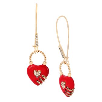 Betsey Johnson - Red Heart Padlock Drop Earrings