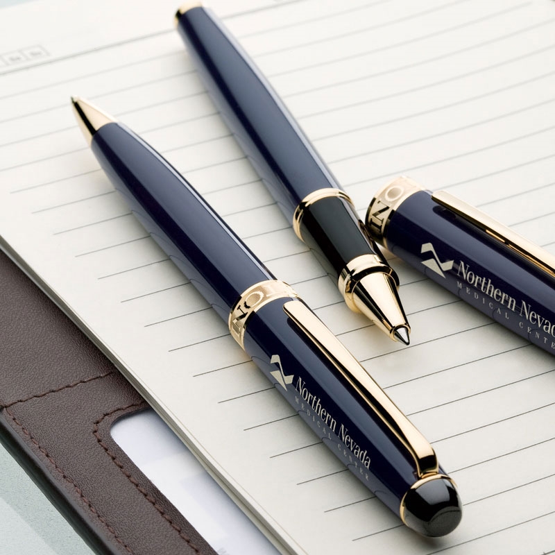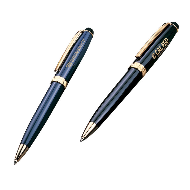 Ballpoint with high gloss lacquered finish with highly polished gold accents. Twist-action mechanism, solid heavyweight brass.
