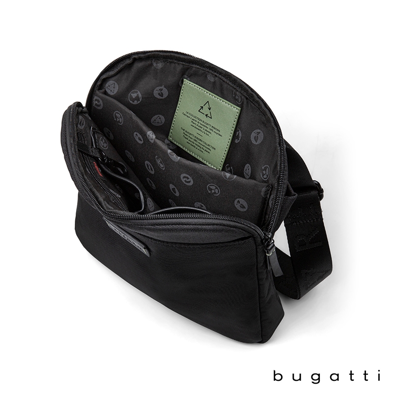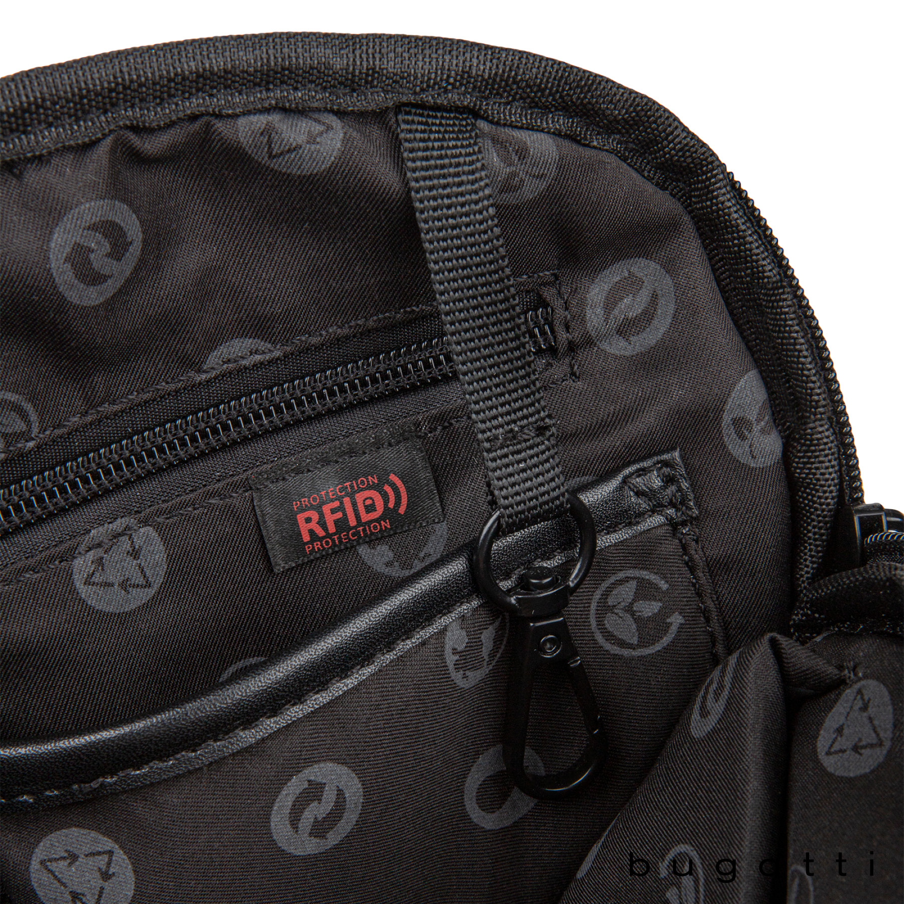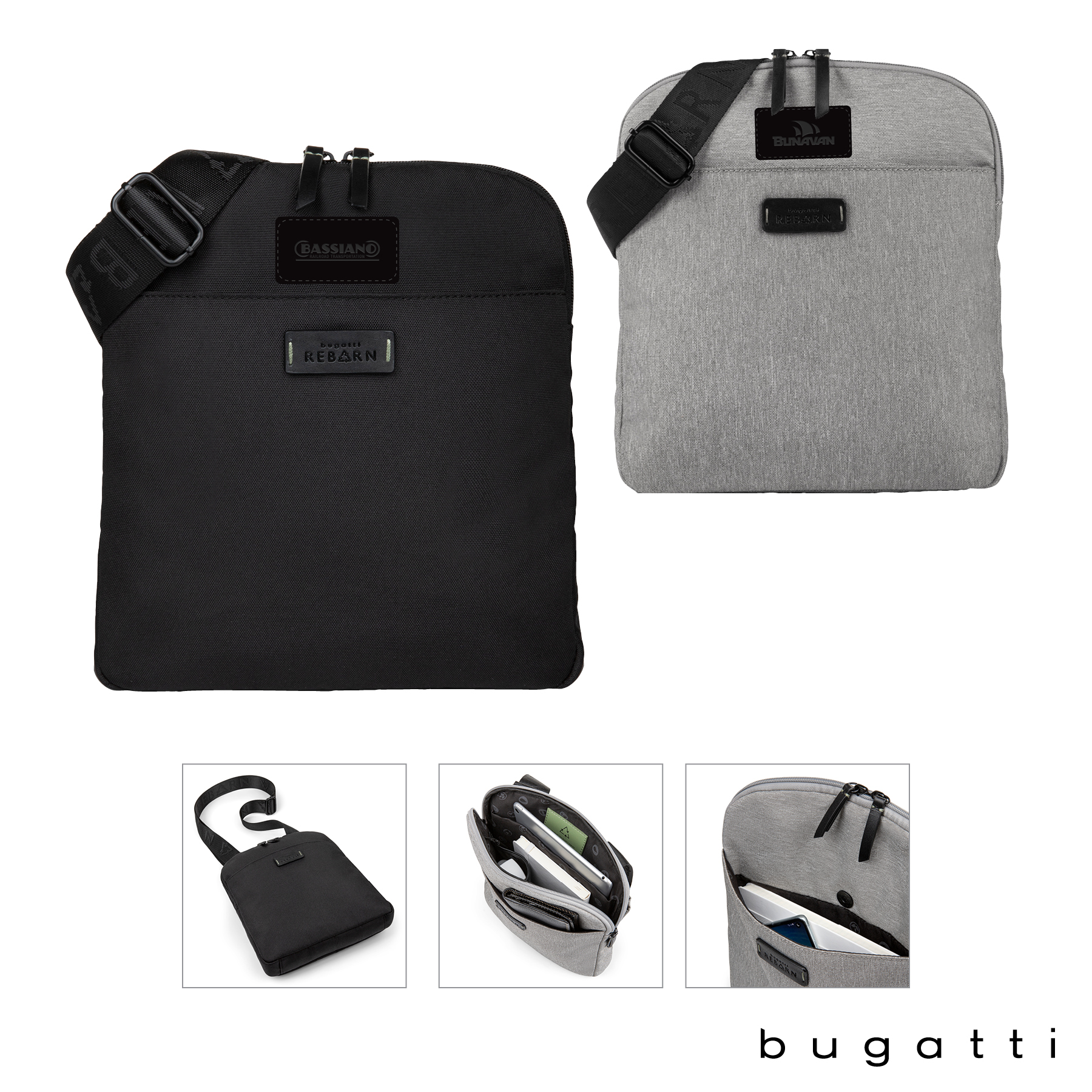Crafted with 100% recycled water-repellant polyester, the Reborn Collection Slim Crossbody Bag from Bugatti is ready for any adventure. Made from recycled water bottles (RPET), this bag features a long adjustable shoulder strap made of super silky material, a zippered pocket at the back to keep your belongings secure, an interior padded pocket that can fit most tablets, an integrated key leash to easily locate your keys, and a zippered RFID protection pocket to keep your personal information secure. In addition, this bag includes a one-year limited warranty.
