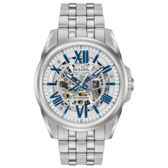 Bulova - Mens Automatic Silver Tone/Blue Bracelet Watch