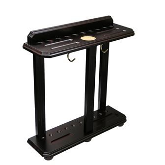 The Floor Pool Cue Rack is the ideal for anyone with a billiards table. This rack accommodates 10 - 57" cues, full set of pool balls, table brush, chalk and has a cork drink coaster. It is the perfect way to keep your game room neat and looking great. Traditional Mahogany finish standard. Warm Chestnut finish available upon request when placing order.