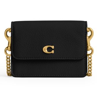 This convenient polished pebble leather card case can be tossed in a bag or worn crossbody with the gleaming chain strap. Finished with Signature hardware, the compact design holds cards, cash, ID and wireless earbuds with an exterior slip pocket for easy access to essentials.