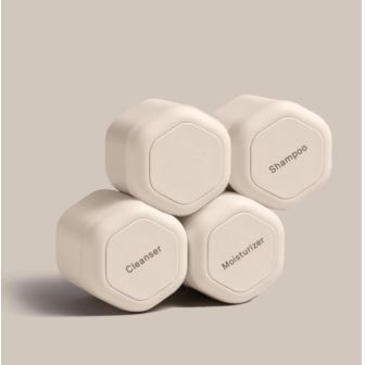 The perfect gift for anyone that likes to travel for a few days to a week at a time and wants to bring the essentials along. This set features four Medium Capsules (1.32 fl oz each) with a Shampoo, Moisturizer, Cleanser, and blank label so you can maintain your routine at a home away from home.(Color :Sand). TSA Approved.