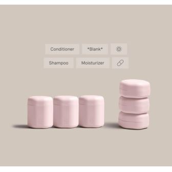 A combination of our best-selling Capsules, the Starter Set includes three Medium Capsules (1.32 fl oz each) and three Small Capsules (0.56 fl oz each) for more flexibility while on the go. The perfect set for longer trips and more specialized routines.(Color :Petal). Includes 1 - Shampoo Label. 1- Conditioner Label. 1 - Moisturizer Label. 1–Sun Icon Label. 1 - Pill Icon. 1 - Blank Label. TSA Approved.